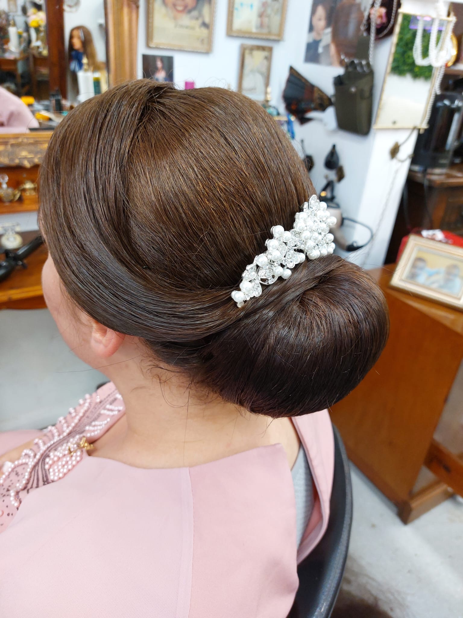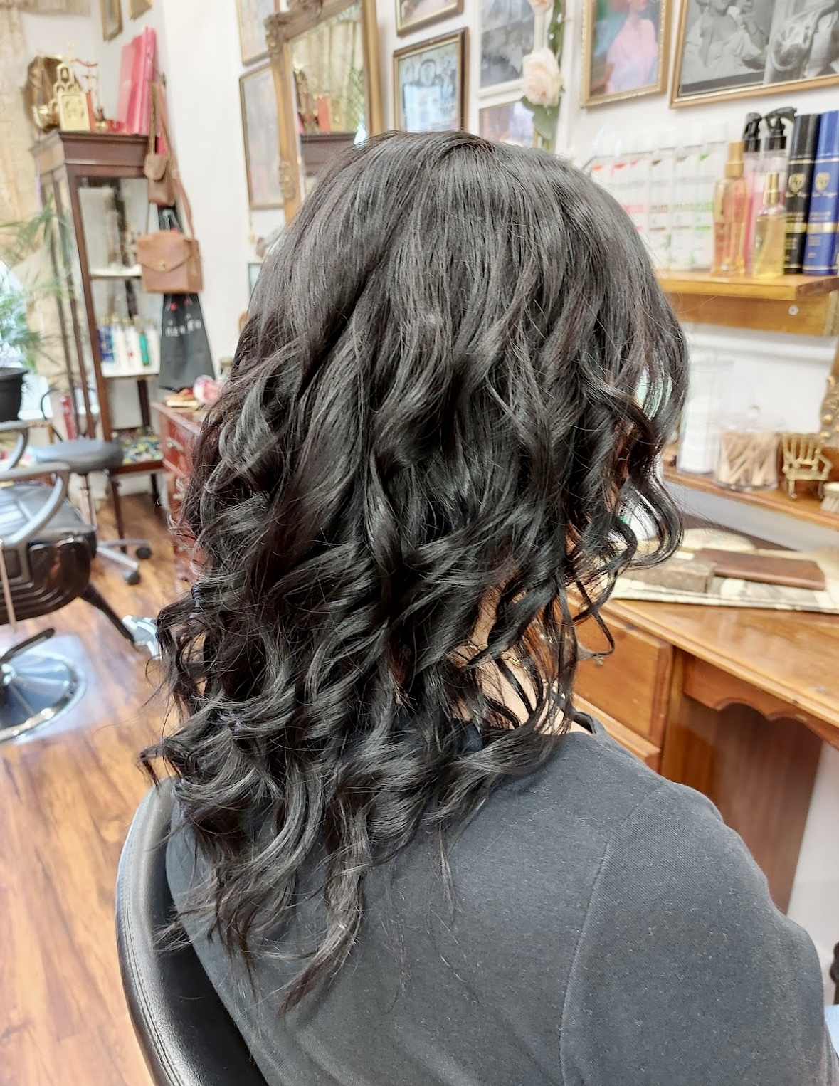 After you step into our salon, you are welcomed into a warm and inviting atmosphere, reminiscent of a Victorian-style house. The space is adorned with vintage accents, antique furniture, and a collection of timeless books and newspapers. Every wall is elegantly decorated with paintings and photographs showcasing the evolution of haircuts through history.
